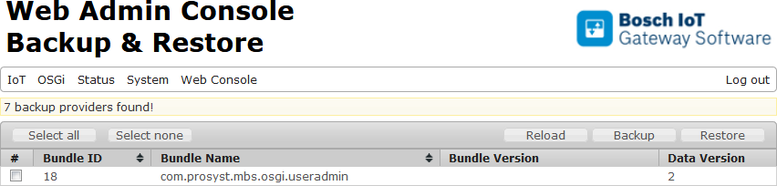 Backup Provider – Shows the bundle symbolic name and version of the bundle that has registered an implementation of the BackupProvider interface.