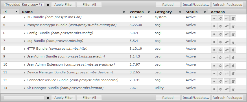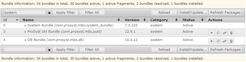 The Web Console allows you to filter all installed bundles and view only the ones that meet some criteria. You have two options for filtering available bundles: