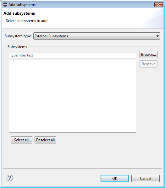 - To Add a new Subsystem click the Add button. The Add subsystems wizard will open.