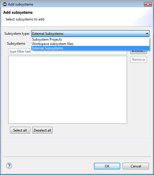 - From the Subsystem type drop-down menu select the desired type.
