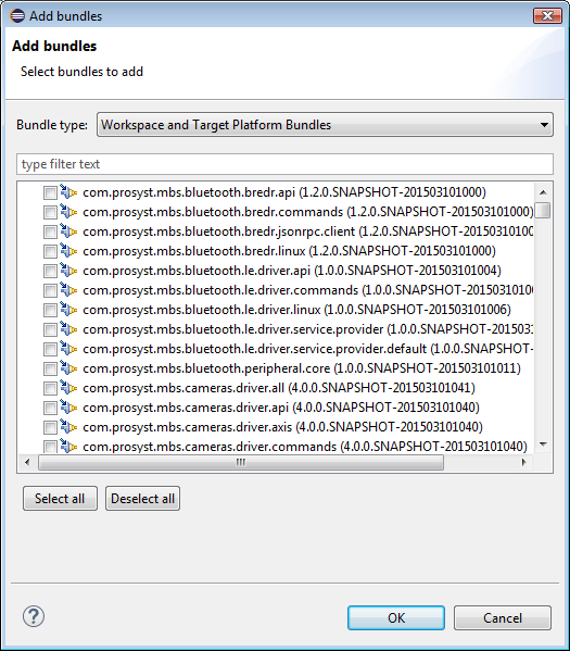 The active target platform and the workspace – use the Workspace and Target Platform Bundles option as Bundle type.