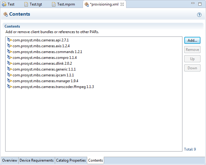 To configure the content of a PAR file through the PAR Editor, go to the Contents tab.