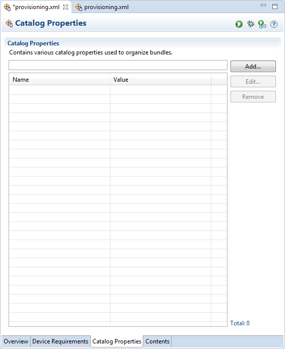 Client bundles may be organized using their catalog properties. You can view and edit catalog properties of a selected PAR file from the Catalog Properties tab of the unit's details.