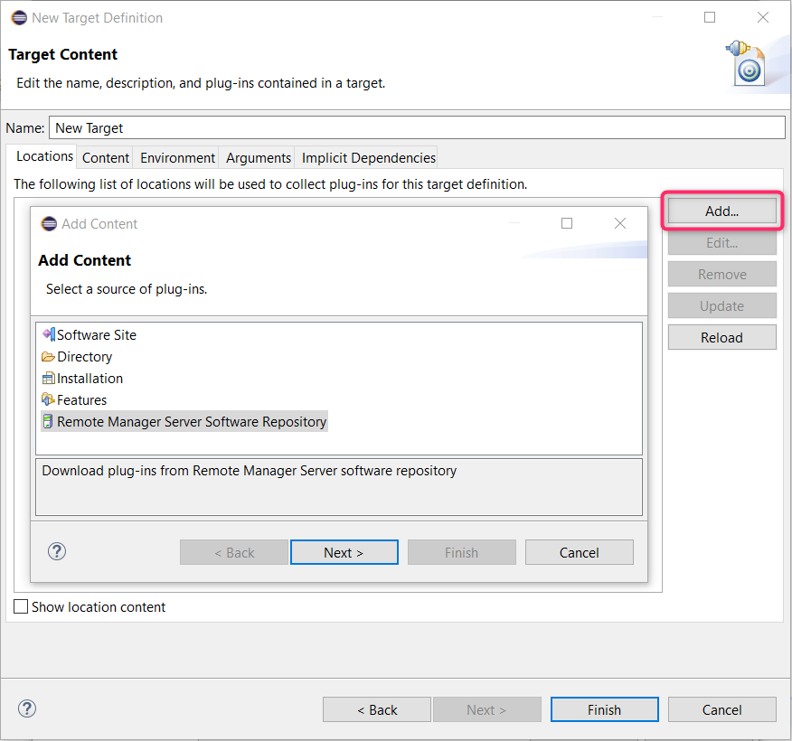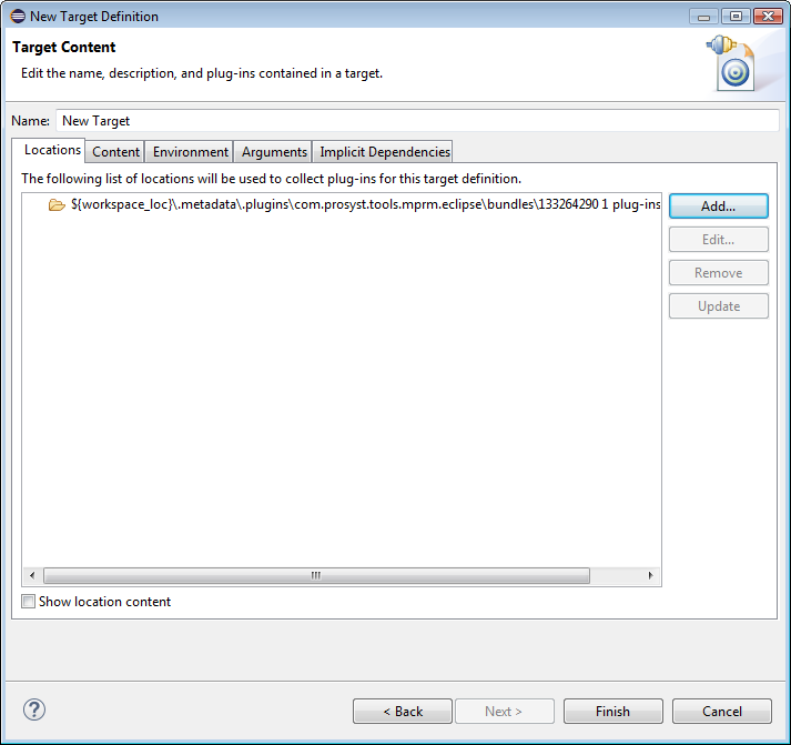In the Edit Target Definition dialog go to the Locations tab and click Add (Figure 2).