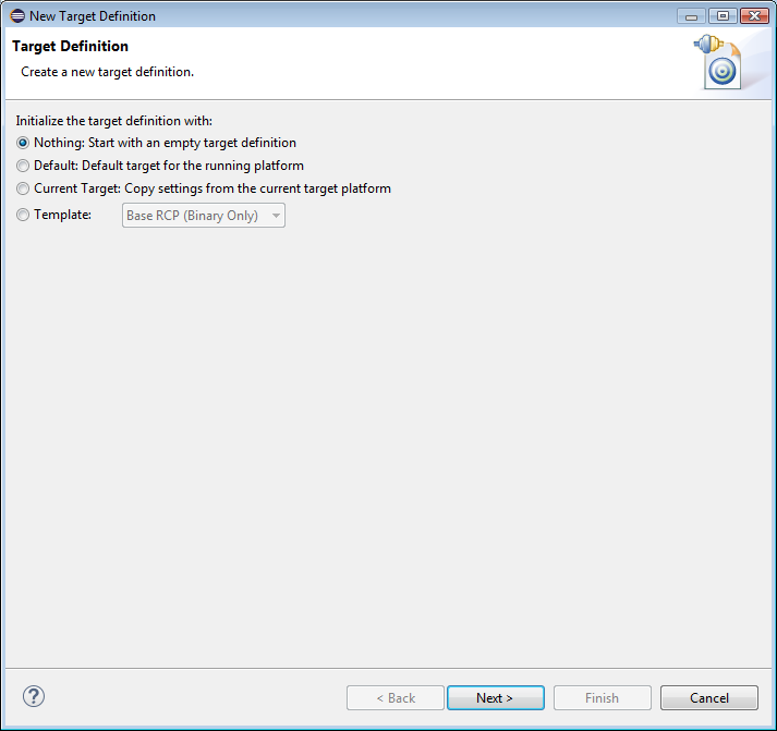 In the New Target Definition dialog, choose an initialization option and click Next: