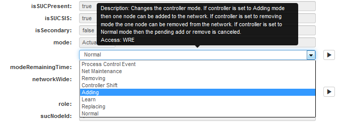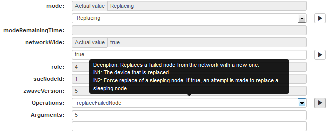 This section describes the Z-Wave Network Controller Replacing mode. It is not allowed to set this mode explicitly via the drop down menu. The controller enters Replacing mode if the replaceFailedNode command is executed successfully.