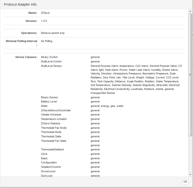 To get more details on the protocol adapter select the Info button, which opens the Protocol Adapter Info window: