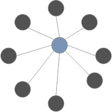Contains a central coordinator node, which passes the messages to the connected end devices. The devices are within direct range to the central node. The advantages of the star configuration are that it's simple, requires no routing, and has high performance. The disadvantages are that there is no alternative if the connection between the coordinator and an end device breaks, and that the transmission range is limited.