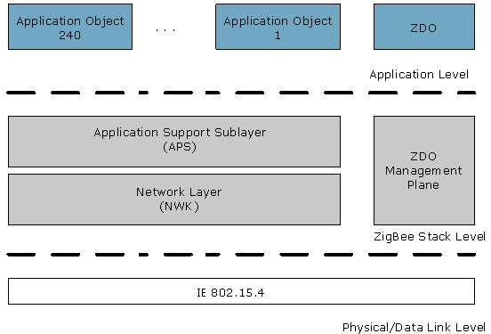 The Zigbee protocol stack consists of 3(three) layers represented in the following picture: