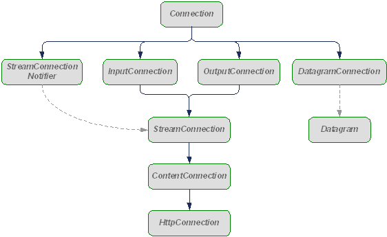 The javax.microedition.io package contains a set of much more convenient connections extending the generic interface. The following figure shows the connection hierarchy in the package.