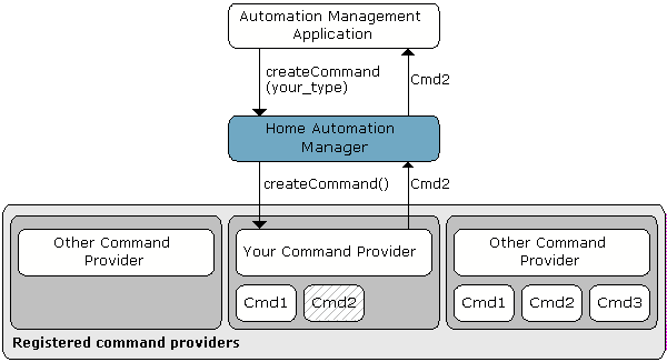 When the Home Automation Manager has to create, retrieve or execute a command of a certain type, it contacts the appropriate command provider.