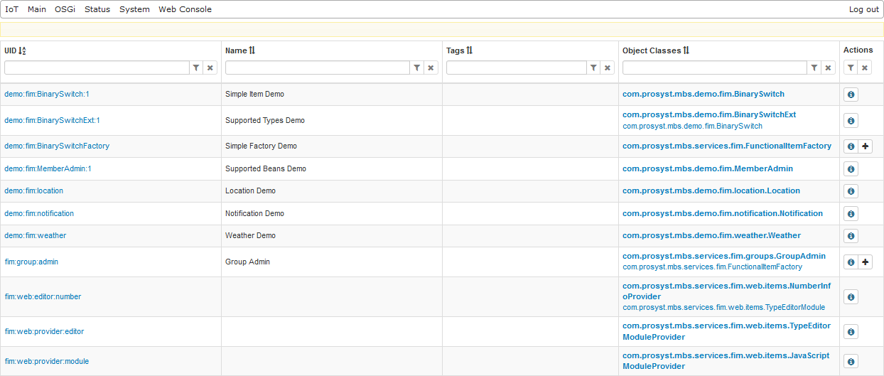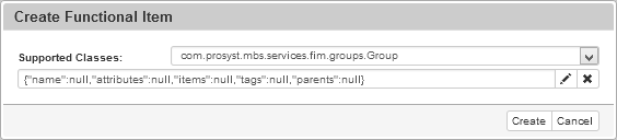 The FIM Group Admin has inherited two interfaces com.prosyst.mbs.services.fim.groups.GroupAdmin and com.prosyst.mbs.services.fim.FunctionalItemFactory which allows the creation of Functional items by clicking the