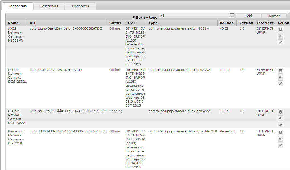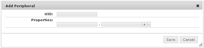To add a peripheral device click on the Add button. Enter the device UID, all its property names and their values and click on Save.