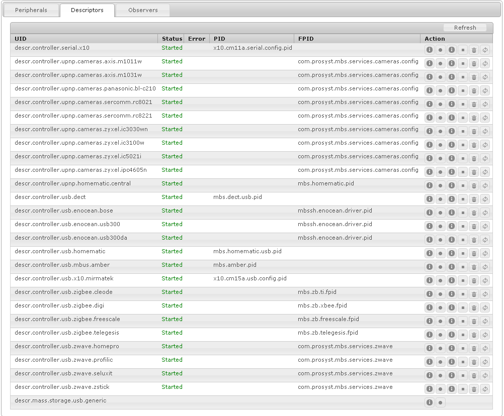 To manage peripheral descriptors and device drivers with the Web Admin Console click on the Descriptors tab: