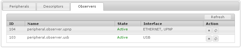 If an observer is started the start/stop button on this row displays a square, which means that the stop operation is available and the observer can be stopped.