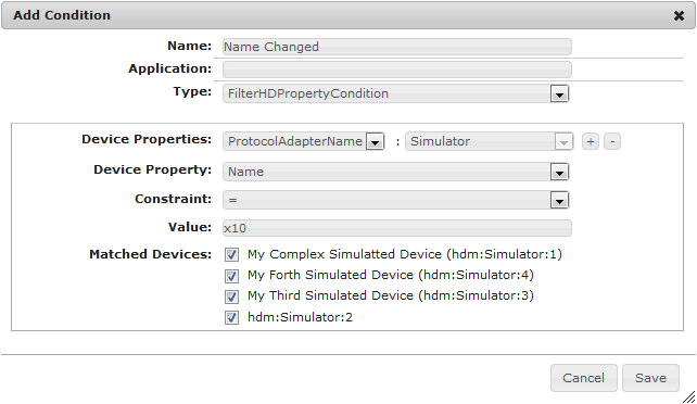 This condition is triggered when a Home Device property is changed. The source for this condition can be several devices that share common properties.