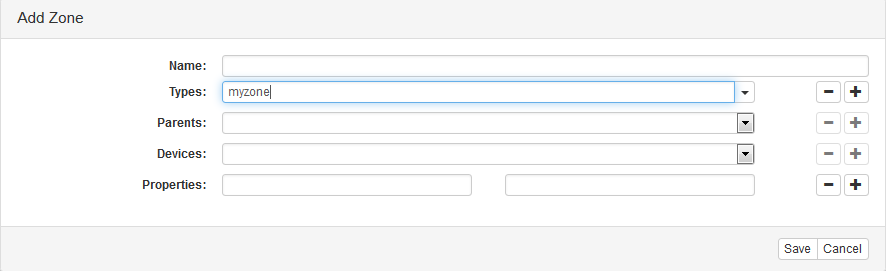 button at the top right of the Zones tab. Then fill in the name, type(s) and properties of the new zone, and click Save.