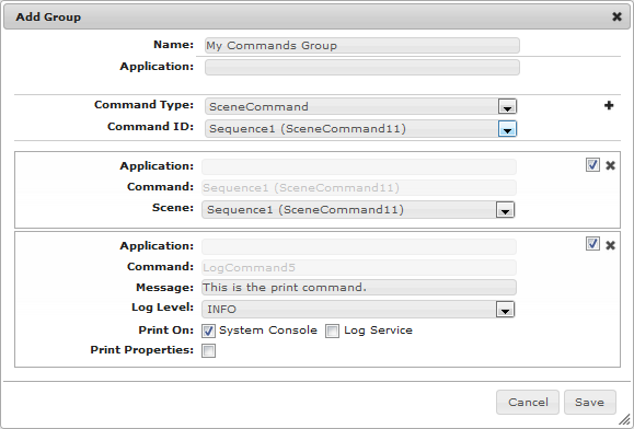 Click the button to add the command to the group - the command will appear as the last one to be executed.