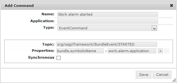 The Event Command is a command that fires OSGi events. It is used to notify third parties when an automation condition is satisfied.