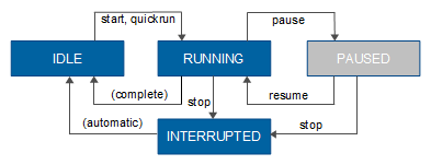 You can start, quick run, pause and stop each scene in the Scenes tab.